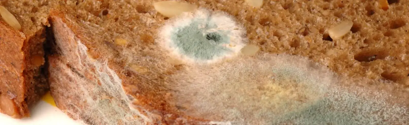 Am Brotschimmel kann man sehen, dass Schimmelpilze als Gefahr für die eigene Gesundheit nicht zu unterschätzen sind. Doch nicht nur das. Bei Schimmelpilzen muss jedem bewusst sein, dass der sichtbare Teil des Schimmels – egal ob auf Lebensmitteln oder an anderen Stellen – nicht den gesamten Pilz ausmacht. Eigentlich sieht man nur die Fruchtkörper. Das Myzel, die Summe der Hyphen, wie man die fadenförmigen Zellen, aus denen jeder Pilz besteht, nennt, ist unter der Oberfläche verborgen. Der Pilz kann sehr tief in das betroffene organische Material eindringen. Sieht man zum Beispiel auf einer Scheibe Brot etwas Schimmel, ist es sehr wahrscheinlich, dass die komplette Brotscheibe befallen ist.